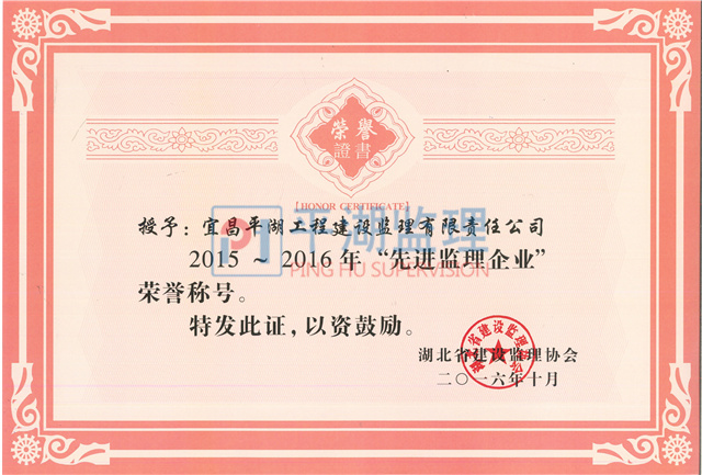 | 2015~2016年度湖北省先進監(jiān)理企業(yè) |