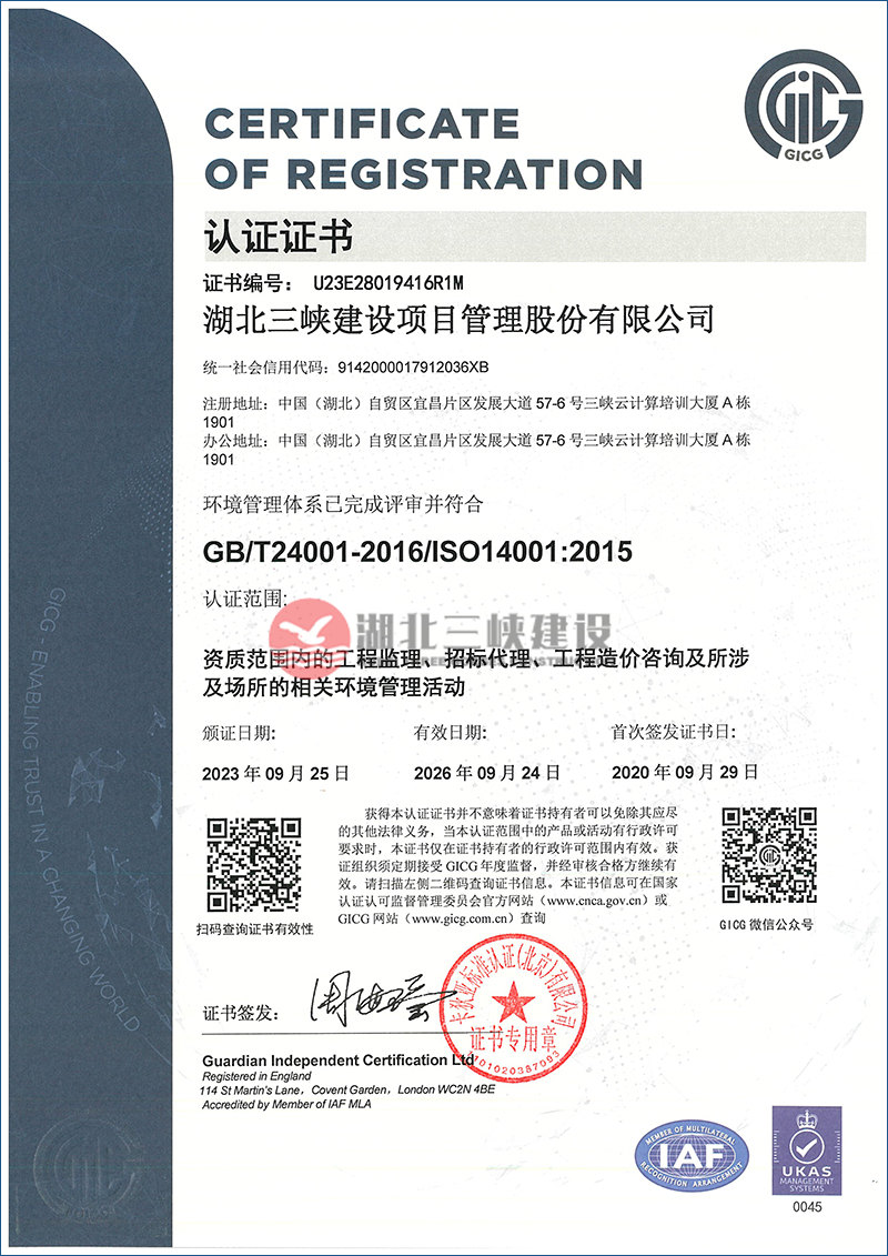 環(huán)境管理體系證書