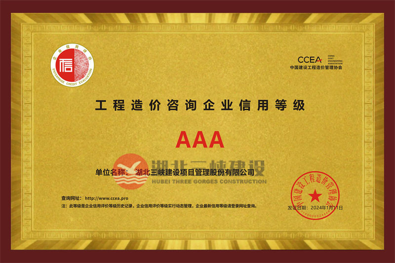 工程造價咨詢企業(yè)信用等級AAA