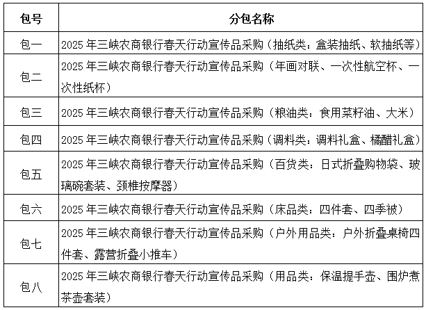 | 2025年三峽農(nóng)商銀行春天行動宣傳品采購競爭性磋商公告 |