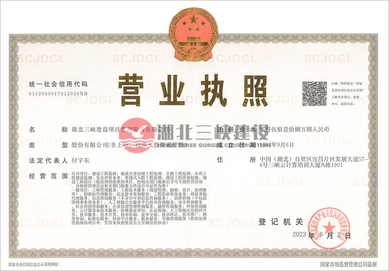 湖北三峽建設(shè)項目管理股份有限公司營業(yè)執(zhí)照