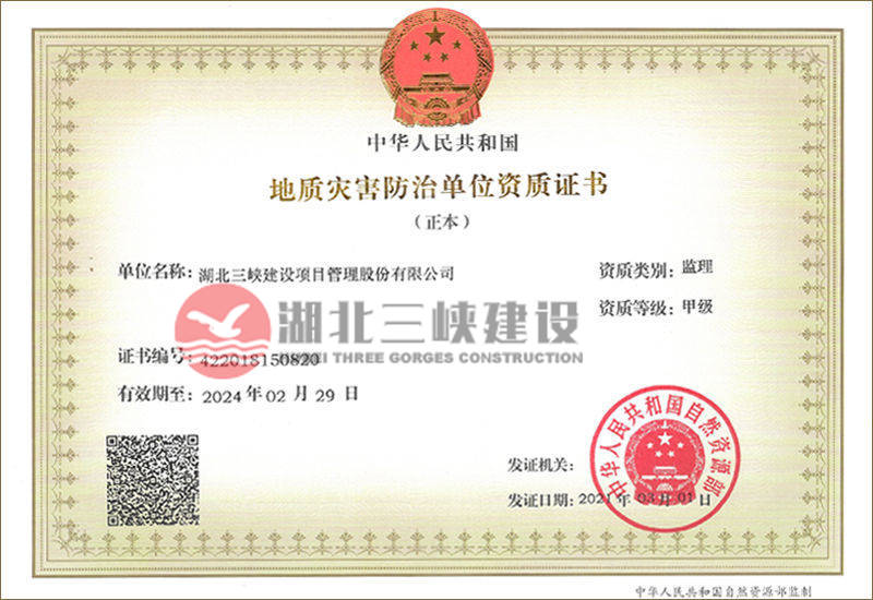 地質(zhì)災害防治單位資質(zhì)證書