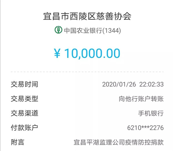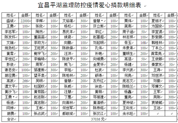 春風(fēng)楊柳萬千條,六億神州盡舜堯”,抗擊疫情平湖有責(zé)。我們雖不是白衣天使,不能做到義無反顧奔赴前線抗擊疫情,但我們能夠情系前線,獻(xiàn)出我們的一份愛。公司黨支部號(hào)召全體員工弘揚(yáng)守望相助精神,積極行動(dòng)捐款援助,用善舉彰顯平湖監(jiān)理人的責(zé)任擔(dān)當(dāng),同呼吸、共命運(yùn)、心連心,為決勝疫情做出積極的貢獻(xiàn)!